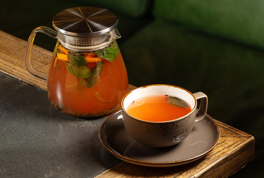 Ассам, сироп мед-душица, корень имбиря, облепиховое пюре, облепиха